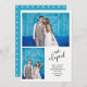 This fun, stylish "we eloped" wedding announcement has a spot for two of your wedding photos, plus whimsical typography. Add your personal message and names to the front. The back features a vibrant, teal colour with white polka dots.