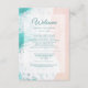 Beautiful teal and white ocean/beach wedding welcome and itinerary card to be given to guests as they arrive to the wedding. This can work especially well for the destination wedding where guests will be spending the weekend and will need some form of communication to let them know everything that is scheduled. Personalise by adding you own text to the front and back.