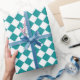 Teal White Chequered Diamond Pattern Wrapping Paper