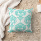 Teal & White Damask Chic Modern Elegant Pattern Pillow.