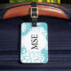 Teal White Floral Pattern Luggage Tag