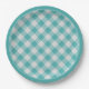 Teal/White Gingham Checks Pattern Simple Plaid Paper Plate