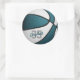 These team colours basketball stickers are suitable for girls or boys and feature the realistic image of a basketball that has alternating teal and white panels - personalise with player name in an "autograph" style font overlying the athlete's jersey number - by katz_d_zynes