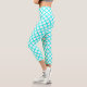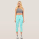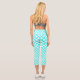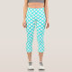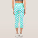 Teal White Harlequin Diamond Stripes Pattern Capri Leggings