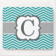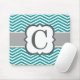 Teal White Monogram Letter C Chevron Mouse Pad