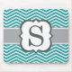 Teal White Monogram Letter S Chevron Mouse Pad