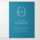 Teal white monogram wreath dedication wedding Tri-Fold programme