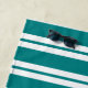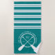 Preppy beach towel in teal and white for your lake house. Add your family name, initial, and the year established to a nautical monogram of crossed paddles over a rope circle. The beach towel also features teal and white stripes.