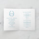 Teal white silver oval leaf monogram art wedding program