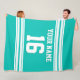 Teal White Sports Jersey Fleece Blanket