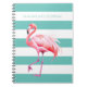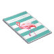 Teal White Stripes Pink Flamingo Personalised Name Notebook