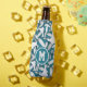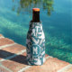 This volleyball themed bottled beverage cooler features a pattern of seemingly endless, randomly arranged teal & white volleyballs on a white background - personalise with the athlete's monogram - by katz_d_zynes
