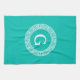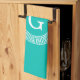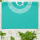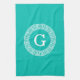 Teal Wht Greek Key Rnd Frame Initial Monogram Tea Towel