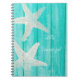 Teal Wood & Starfish Beach Elegant Chic Tropical Notebook