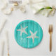 Teal Wood & Starfish Beach Elegant Tropical Chic Paper Plate