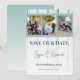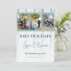 Announce your wedding date to friends and family with this simple and elegant Teal Wooden Photo Collage Save the Date. Announcement design features a wooden background and placements for three photos of the happy couple complete with a modern text design.