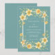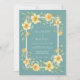 A delicate teal backdrop embraces a cascade of painterly yellow blossoms and lush green foliage. This enchanting design evokes a romantic and whimsical atmosphere, perfect for a memorable occasion. The vibrant floral arrangement offers a touch of natural elegance.