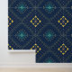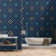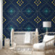 Transform your living space with our unique peel-and-stick wallpaper. Inspired by the intricate patterns found in Middle Eastern art, this wallpaper features a mesmerising geometric motif. The deep navy blue background sets the stage for a symphony of lighter blue diamond shapes, each enclosing an eight-pointed star in teal. Golden yellow accents add a touch of opulence, creating a harmonious balance. The lattice effect, formed by chains of golden dots and smaller teal circles, evokes the craftsmanship of historical eras like Byzantine and Ottoman empires. It’s a celebration of timeless elegance. Deep blues evoke serenity and depth, while the pops of gold and teal infuse vibrancy without overwhelming the senses. The result? A sophisticated palette that complements any interior.