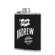 The flask itself is fine. It’s a cheap flask, obviously bought in bulk, however am prepared to overlook that. Given that it is a personalized item, I would have liked to have seen gift boxing instead of the generic packaging. Terrible printing, and/or quality. It’s a cheap, tacky vinyl. It is not cut straight and is also applied in a way that it is overhanging the bottom, causing the glue to catch on items and it will eventually roll and tear, damaging the wrap.