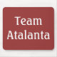 A dark, dusky pink "Team Atalanta" mousemat. Atalanta is one of the few "heroines" in Greek myth. She took part in the hunt for the Calydonian Boar and would only marry the man who could out-run her. She was eventually defeated in a foot race by Melanion, with help from Aphrodite.
