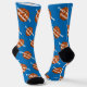 Personalised Basketball socks with basketball graphic, plus text. Background is shown with a blue background and white text, however socks can be any colour. Select colour at the edit / personalise prompt. Designed by HAMbyWhiteGlove aka HAMbWG. Shown with white text.