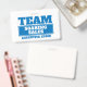 Blue team personalised name tag. Ideal for office teams, family events, fun gaming or for sporting teams. Personalise this design with your own team name or family name and team or motto and name and your role on the verse. Other colours available. Great for team building, events and motivational team gifting. Designed by www.mylittleeden.com on zazzle