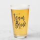 A custom tall shot glass for your ultra special Team Bride . It features the words "Team Bride " in an elegant script style text.