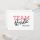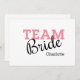 Let everyone know who's team you're on with this personalised Team Bride pink script invitation. Perfect for bachelorette parties, bridal showers and other wedding events.