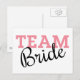 Let everyone know who's team you're on with this Team Bride pink script postcard. Perfect for bachelorette parties and other wedding events.