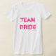 I purchased this shirt and a matching men's one for my grandaughter and her fiance. They were both thrilled and wore them immediately. The quality of the shirts was good and the design was bold and easily seen. I would recommend these shirts to newly engaged couples. The design was colorful, bold, and easily read