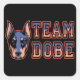 An intense black & tan Doberman Pinscher face, with, "Team Dobe" lettering. T-shirts, sweats, novelty gift swag.