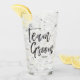A custom tall shot glass for your ultra special Team Groom . It features the words "Team Groom " in an elegant script style text.