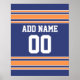 If you are a blue and orange Fantasy Football team owner, make your own products and show off to your friends! Or - Do you play High School Football and want a memento? This jersey design is perfect for anyone playing sports.