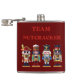 The flask itself is fine. It’s a cheap flask, obviously bought in bulk, however am prepared to overlook that. Given that it is a personalized item, I would have liked to have seen gift boxing instead of the generic packaging. Terrible printing, and/or quality. It’s a cheap, tacky vinyl. It is not cut straight and is also applied in a way that it is overhanging the bottom, causing the glue to catch on items and it will eventually roll and tear, damaging the wrap.