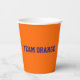 Paper   cups with orange base and dark blue custom text design "Team Orange". It's now simple to personalise with your own team name, city logo, and so on.  Design by Alma Wad.
