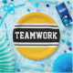 This sporty, athletic design features bold TEAMWORK text inside a highlighted wide black stripe with double white racing stripes against bright yellow outer stripes. The text in this design can be personalised.
