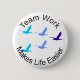 An inspirational button for teamwork. Ducks flying in a "V" to reduce the work for the flock.