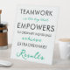 Designed to stand beautifully on desks, counters, or shelves, this pedestal sign makes a meaningful addition to any workspace where cooperation and teamwork matter.