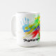 Mug with hand prints for the concept of teamwork and cooperation