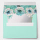Mint Green envelope with floral teapot on the front and the liner in silver with aqua, turquoise, mint green & white watercolor flowers.