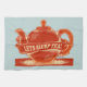 A funny design for anyone who loves to get together with friends and drink tea. A vector illustration of a teapot with a ribbon wrapped around it. The text on the ribbon reads let's get together and slurp tea.