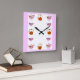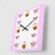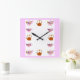 Teapot, Teacup, And Copper Teakettle Square Wall Clock, by Kristie Hubler, with a fruits and leaves pattern on the teapots and teacups