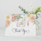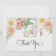 Tea Party Themed Thank you Notes on paper Flat card, 5 x 7 with envelope. (Order at the same time as your invitations and they add together for a quantity discount). This art collection features a English garden gathered flower and leaf foliage, chintz fabric styled vintage teapot hand painted on canvas by Audrey Jeanne Roberts. Copyright.