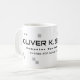 Cool and modern design for a white coffee-mug, personalised with name and profession (Computer Systems Analyst)