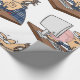 A tech support worker at a desk blowing a bubble. This design looks really effective on these Wrapping Paper