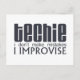 "Techie: I don't make mistakes, I improvise" - a humourous saying about being a crew member, perfect for the tech in your life with attitude.