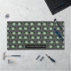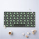A pair of thick spectacles creates a cool nerd themed pattern on a grey background. The eyeglasses have black unisex frames and thick lenses that reflect a pale green. You can add your own fave geek joke or slogan to the text area, or personalise with a name.