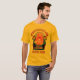 Excellent overall look and quality. T-shirt washes well too! One of my husbands favorites, and he gets compliments every time he wears this design. Product arrived exactly as pictured. Loved it on the gold tee, but it would look great on black as well.
