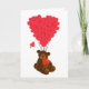 Funny cute teddy bear cartoon animal and a romantic red Valentines love heart balloon, on a customisable background