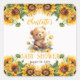 Teddy Bear and Sunflowers Baby Shower Square Sticker